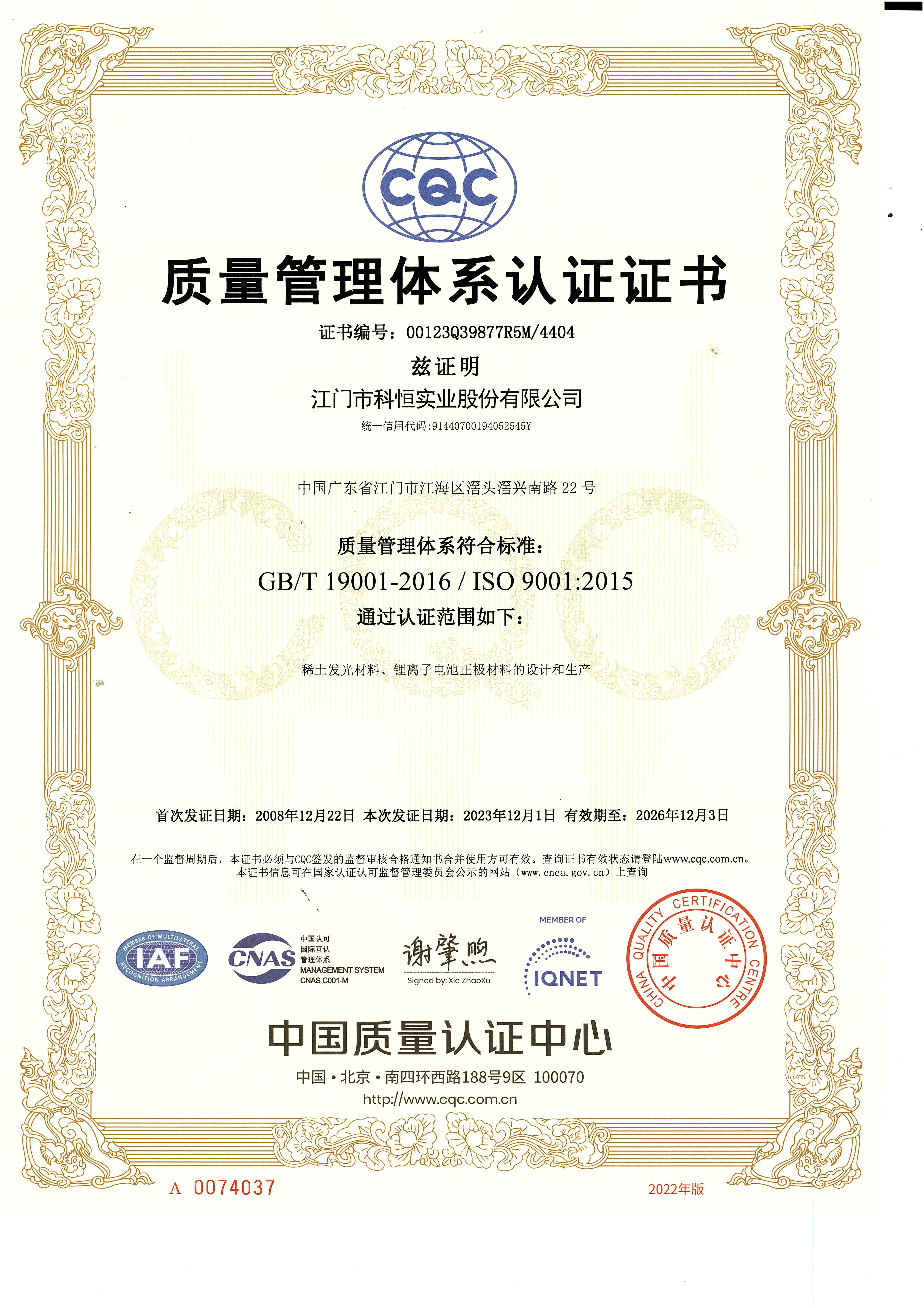 科恒堅(jiān)持“科技卓越、永恒追求、質(zhì)量第一、客戶(hù)至上”的質(zhì)量方針,設(shè)立各級(jí)質(zhì)量控制體系,保證產(chǎn)品質(zhì)量。公司先后通過(guò)了ISO9001質(zhì)量管理體系認(rèn)證和ISO14001環(huán)境管理體系認(rèn)證。公司以滿(mǎn)足客戶(hù)需求為宗旨,以卓越的科技成果、完善的制造過(guò)程,制造一流的產(chǎn)品、增值的服務(wù)、共享的價(jià)值,讓客戶(hù)滿(mǎn)意。