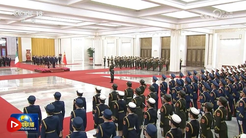 會(huì)談前,習(xí)近平在人民大會(huì)堂北大廳為馬塔雷拉舉行歡迎儀式。