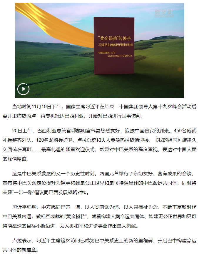 視頻畫報(bào)丨“黃金搭檔”的握手——習(xí)近平主席的巴西利亞時(shí)間
