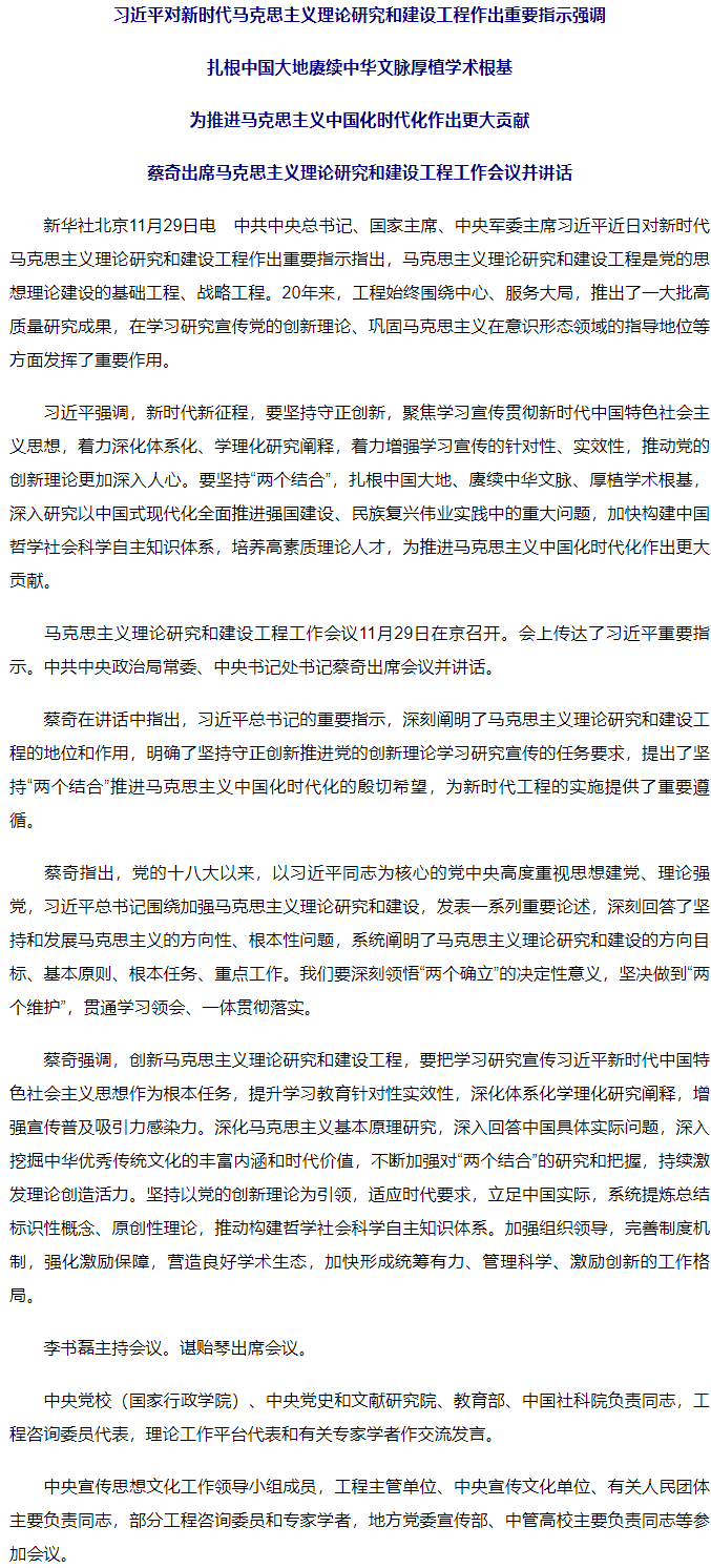 習(xí)近平對(duì)新時(shí)代馬克思主義理論研究和建設(shè)工程作出重要指示