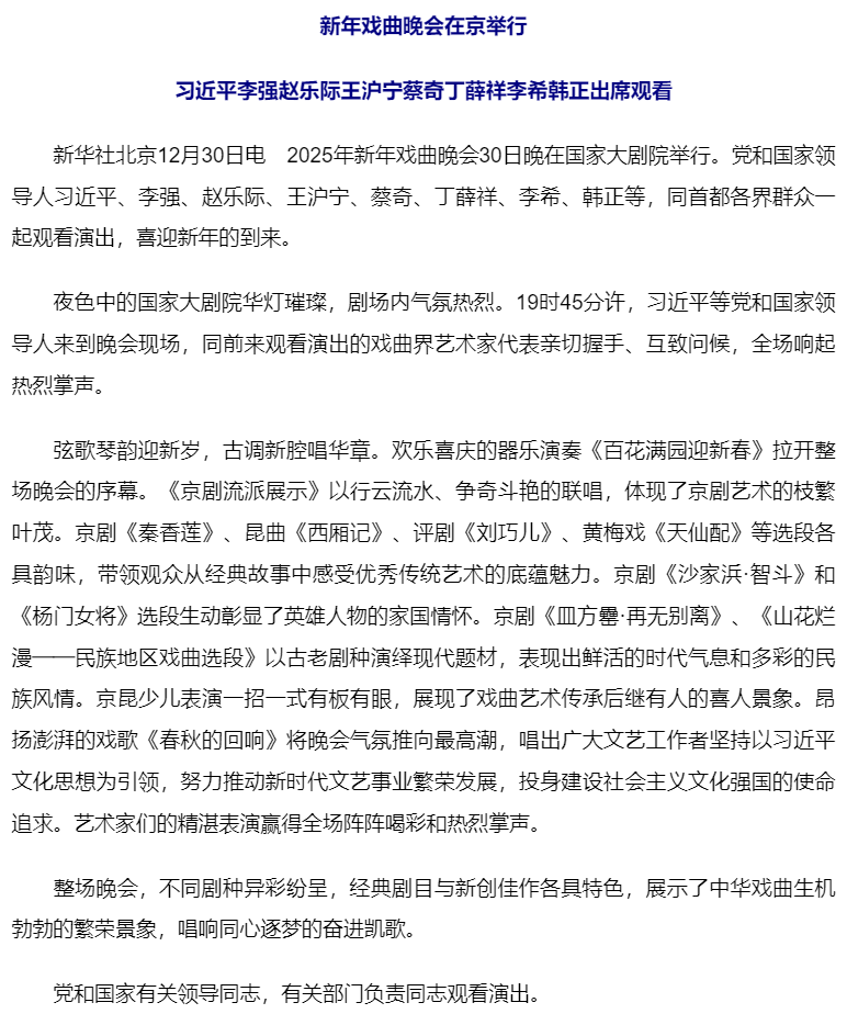 新年戲曲晚會(huì)在京舉行 習(xí)近平等出席觀看