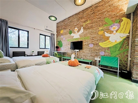 近年來,古井鎮(zhèn)玉洲村的鄉(xiāng)親吳劍輝投入逾1000萬元,對古井百年書香文化村進(jìn)行升級改造與維護(hù)。荷溪星舍和鵝鎮(zhèn)樂園民宿就是由本厚學(xué)校的校舍改造而成,最多可同時接待80人入住,客房舒適,設(shè)施齊全。本厚學(xué)校內(nèi)還設(shè)有多個打卡點(diǎn),如百年僑校展覽館、大禮堂、十個勤天主題店、懷舊課堂、百年書屋、時光書店等。荷溪星舍2024年入選全國丙級旅游民宿,是江門市首家。