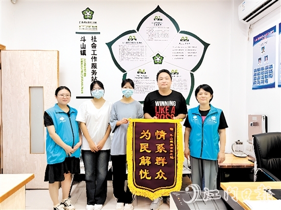 小木(化名)姐妹倆親自給社工站送上錦旗。