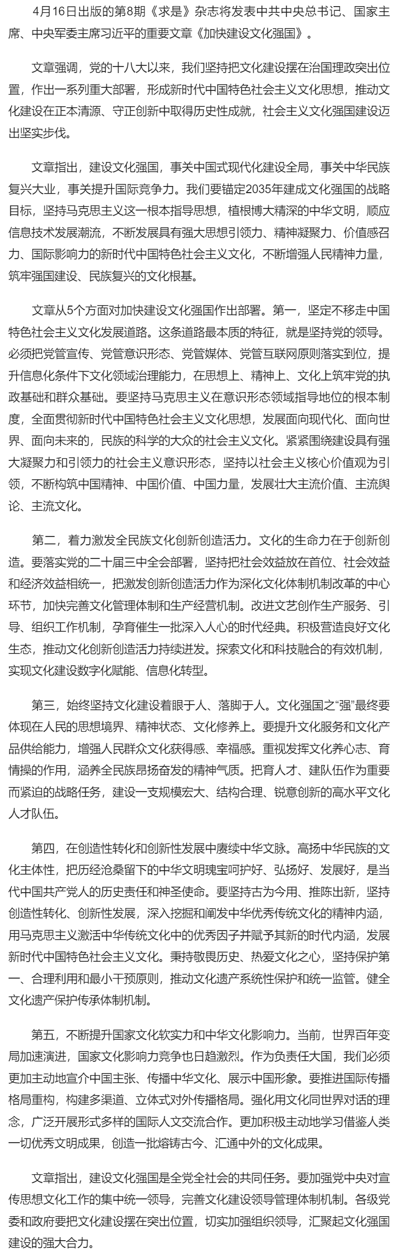 《求是》雜志發(fā)表習(xí)近平總書記重要文章《加快建設(shè)文化強(qiáng)國》