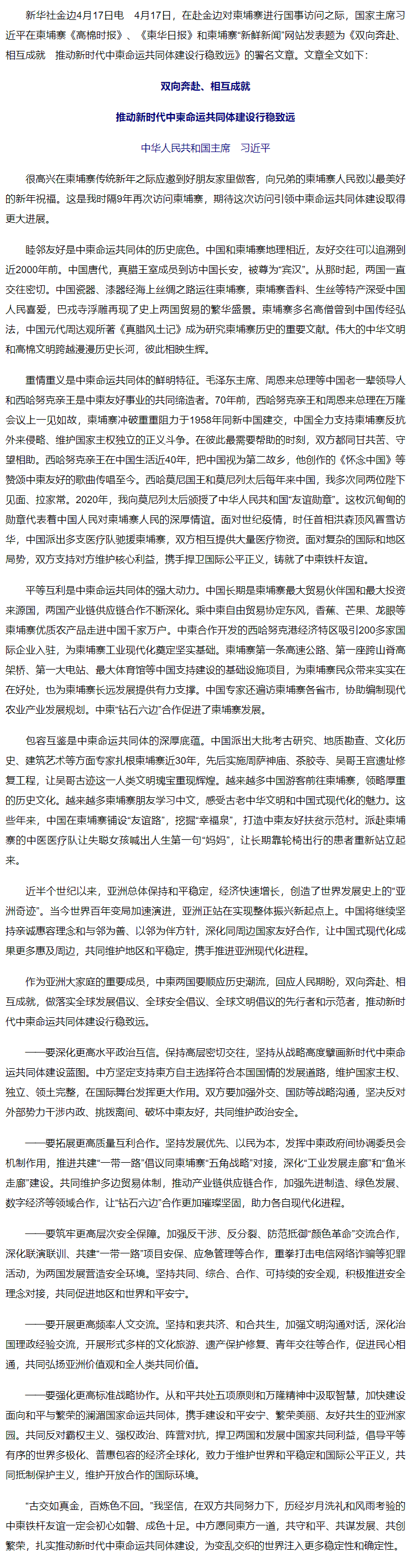 習(xí)近平在柬埔寨媒體發(fā)表署名文章