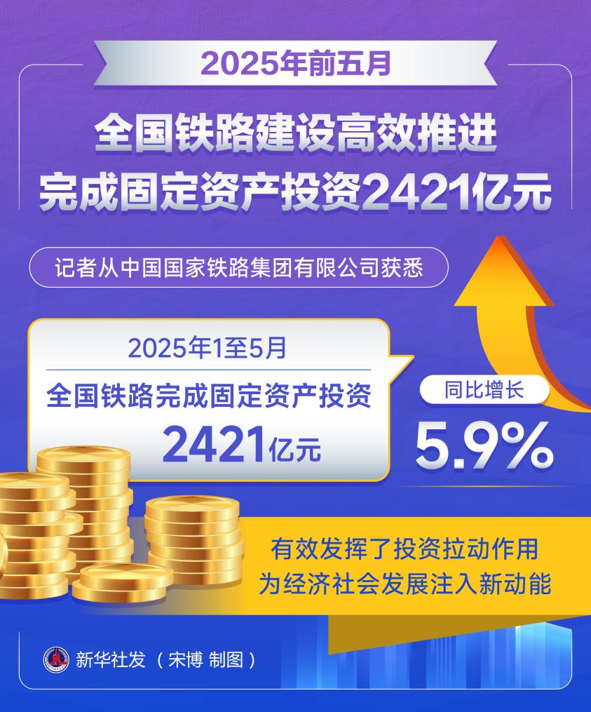 ??新華社北京6月15日電 題:今年前五月全國鐵路建設高效推進 完成固定資產投資2421億元