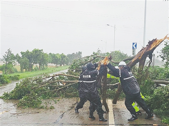 ??? “大家加把勁,盡快把斷枝清運(yùn)走?!?月20日,蓬江區(qū)白沙街道象山社區(qū)一棵大樹(shù)被大風(fēng)吹倒,社區(qū)“兩委”干部馬上上報(bào)街道黨工委,并立即組織人員趕到現(xiàn)場(chǎng),協(xié)助有關(guān)部門(mén)切割倒伏樹(shù)干、清運(yùn)散落枝葉。面對(duì)臺(tái)風(fēng)可能帶來(lái)的險(xiǎn)情,蓬江區(qū)38支應(yīng)急救援隊(duì)伍近800人全員待命,1000多名農(nóng)村社區(qū)干部、網(wǎng)格員輪班值守,時(shí)刻做好應(yīng)急搶險(xiǎn)救援準(zhǔn)備。