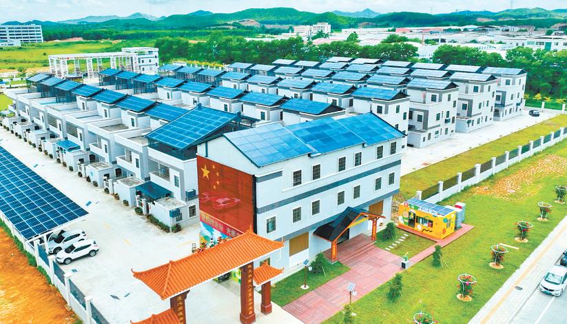 ????在鶴山市址山鎮(zhèn)蓮珠新村,數(shù)十棟整齊劃一的新式農(nóng)房齊刷刷地用上光伏板做屋頂,既保留了嶺南建筑的特色,也讓村民享受了陽光“伏”利。“光伏發(fā)電在供應(yīng)我們?nèi)粘W杂弥?,還有租金收入,且能給家里隔熱降溫,一舉三得。”村民李鄭算了一筆“經(jīng)濟(jì)賬”。不止于此,從村內(nèi)到鎮(zhèn)上都隨處可見光伏咖啡屋、光伏長廊、光伏車棚、光伏球場、光伏外墻等特色化應(yīng)用場景。