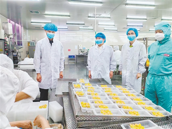 江門海關(guān)實(shí)施“提前申報(bào)+優(yōu)先查檢”模式,縮短通關(guān)時(shí)間。圖為海關(guān)關(guān)員到企業(yè)查驗(yàn)糕點(diǎn)等食品。