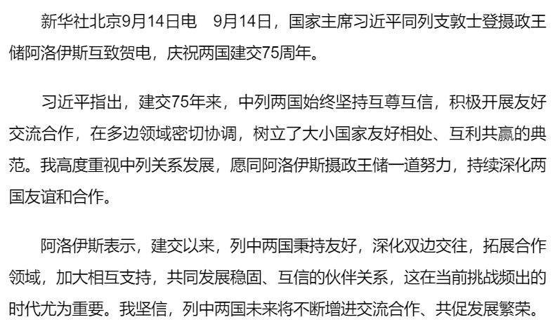 習(xí)近平同列支敦士登攝政王儲(chǔ)阿洛伊斯就中列建交75周年互致賀電