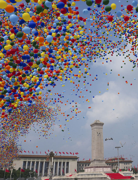 ??2025年9月3日,紀念中國人民抗日戰(zhàn)爭暨世界反法西斯戰(zhàn)爭勝利80周年大會在北京隆重舉行。這是紀念大會現(xiàn)場放飛氣球和鴿子。新華社記者 牟宇 攝
