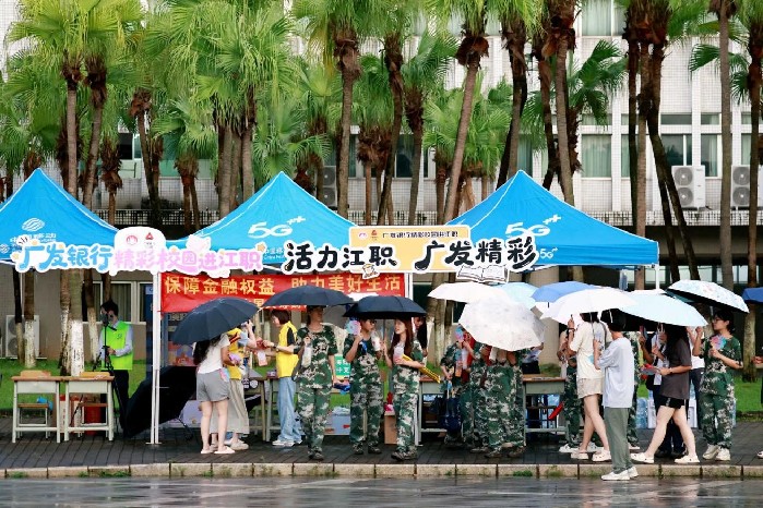 迎新晚會(huì)現(xiàn)場,江門分行以“活力江職,廣發(fā)精彩”為主題,將品牌形象融入宣講,將金融普及教育送到師生身邊,在現(xiàn)場設(shè)置多個(gè)互動(dòng)宣傳區(qū)域,通過視頻播放、發(fā)放宣傳手冊、現(xiàn)場答疑、有獎(jiǎng)互動(dòng)等形式,為師生們帶來涵蓋消費(fèi)者權(quán)益保護(hù)、反詐防騙、存款保險(xiǎn)、公積金政策及反洗錢等實(shí)用金融知識(shí),用金融央企成員單位的社會(huì)責(zé)任擔(dān)當(dāng)為高校學(xué)子筑牢金融安全防線。