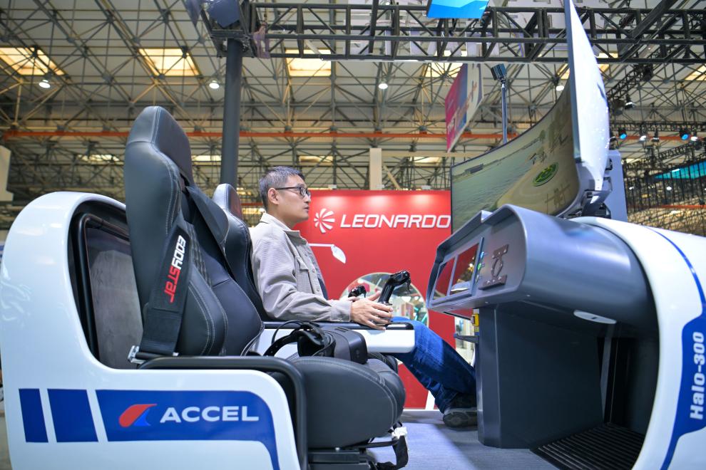 10月16日,觀眾在天津直博會低空經(jīng)濟館內(nèi)體驗一款eVTOL(電動垂直起降飛行器)。新華社記者 趙子碩 攝