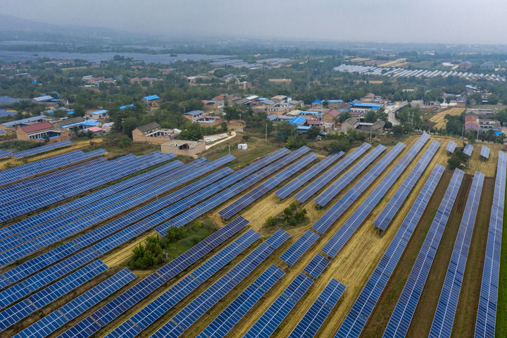 ??2025年6月25日在山西省運城市芮城縣夭上村拍攝的光伏基地(無人機照片)。新華社記者 楊晨光 攝