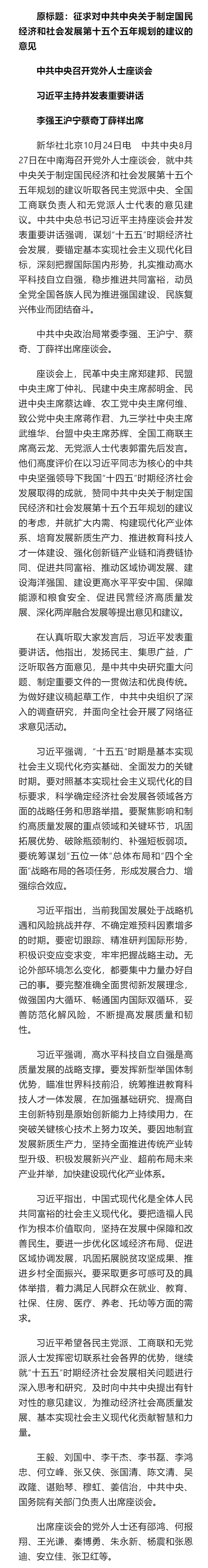中共中央召開黨外人士座談會 習近平主持并發(fā)表重要講話