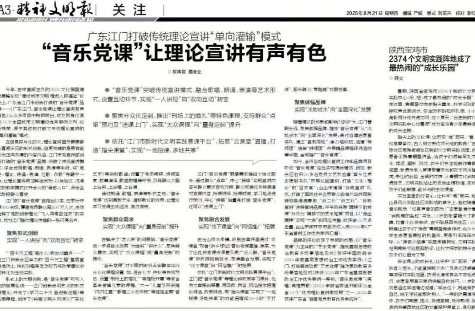 《精神文明報(bào)》關(guān)注江門“音樂黨課”,讓理論宣講有聲有色