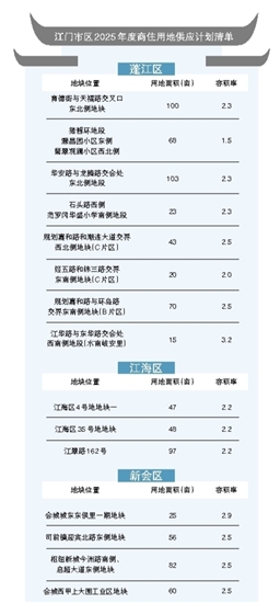 ????與新會區(qū)相比,蓬江區(qū)最受矚目的莫過于商住用地。蓬江區(qū)2025年計劃供應(yīng)商住用地442畝,在三區(qū)中最多,共計8宗。